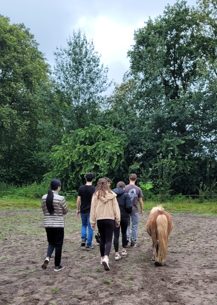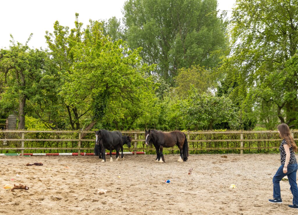 Je hebt geen ervaring met paarden nodig. Ik werk buiten met onze pony’s. Trek daarom in het koude seizoen goede waterdichte en warme kleding aan. Denk ook aan stevige schoenen, waarop je goed uit de voeten kunt.